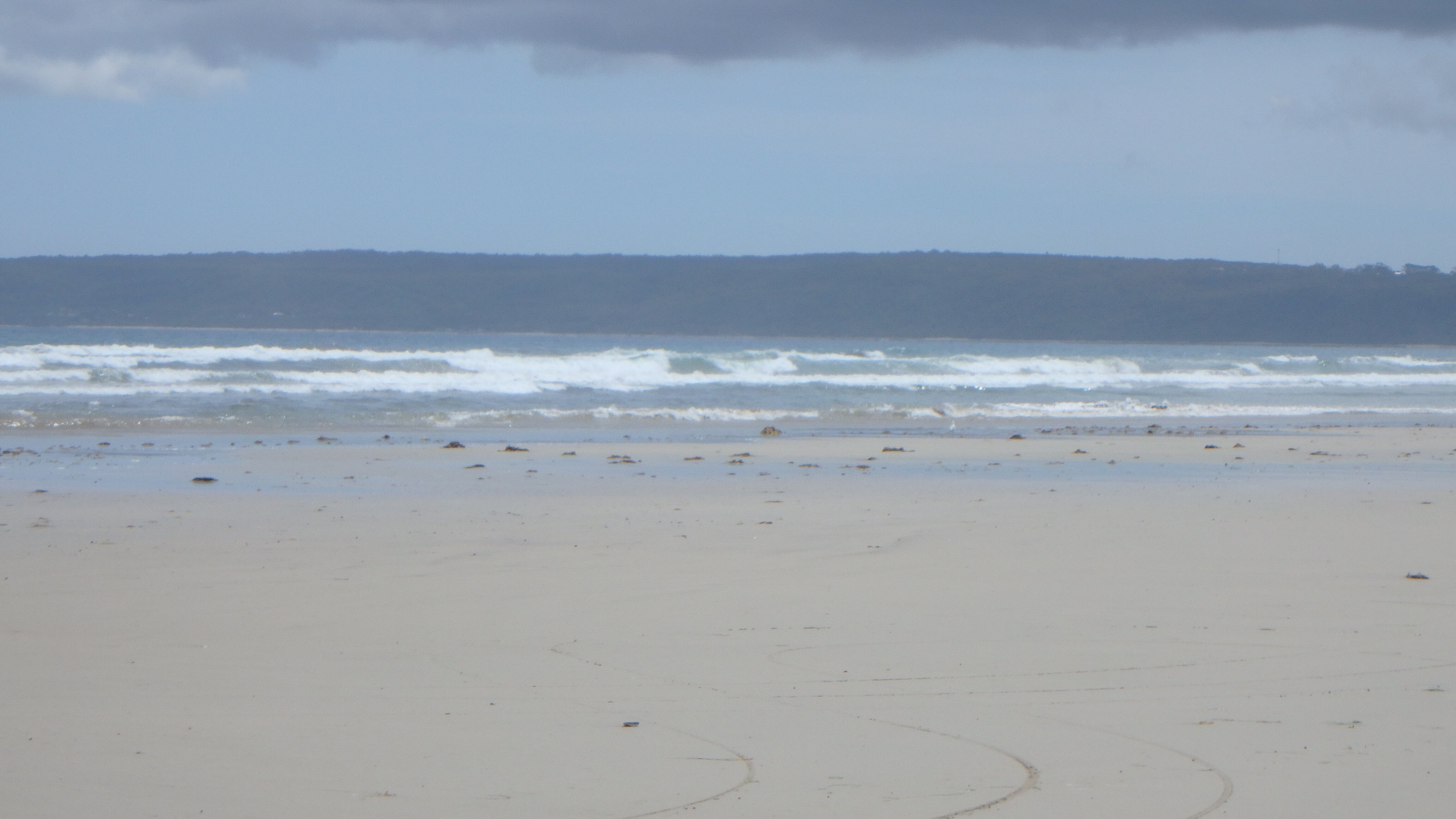 23. An awesome day!!! Sunshine and a very light wind greeted our arrival to Sandy Point at 11:30am. A short walk up the hill to check out the beach. No white caps out the back of the breakers, so guessing it was only 5-6 knots. But we set up the two buggies (the Libre and the GT), grabbed a few kites, and hit the beach. The beach was just perfect, nice 80m wide hard packed sand. The wind had seemed to have already turned to the South, and was ment to head more Easterly later. So with a cross-on, and shifting to more down the beach, we didn't waste any time getting up and running. Had to first sort out Mr 12. Tried a few of his kites, but they were far too small. So, I offered my 10m Ozone Manta to him for a test, the biggest kite he has ever flown. He had a short static fly, then jumped in the buggy. I didn't get the kite back all day!! By the time he was up and running, the wind had picked up a knot or two, and there was the odd white cap out the back appearing. So I threw out a 6.5m PL Vapor and off towards the point we went. A little under powered, but still a nice solid run. Mr 12 turned back not long after reaching the sand spit. And, as usual for the spit, the wind was that knot or two stronger with no sand dunes to stop it. The 6.5m was starting to come alive!! To the end of the spit I went, and then back down the beach to find Mr 12. Got back to our starting point to find Mr 12 having fun with a big de-power kite. Doing little jumps, and leaving 30m skud marks down the beach. The wind was holding it's 7-8 knots now. It was 2pm and @DrWind turned up. So we all went for a run to the point. Mr 12 was a little slower than us two on the up wind, but when we came back down wind from the point, he was hot our tails!! Stopped for a short time out the front of Sandy Point, and decided to Follow @DrWind back down to his launching place at Waratah. Well the wind softened on the run down. We made it there, but getting back was going to be next to impossible. Now blowing sub 5 knots, and angling more down the beach, we were not going to be able to get back to our starting point. So a big thanks to @DrWind for the lift back to the car at Sandy Point, walking the 10km back would not have been too much fun. Drove the car to Waratah, and packed up the buggies, said good bye to @DrWind and home we went. Stopped along the way for Fish and Chips, and got home almost perfectly for a 12 hour door to door day. Just a Feaking Awesome Day!!