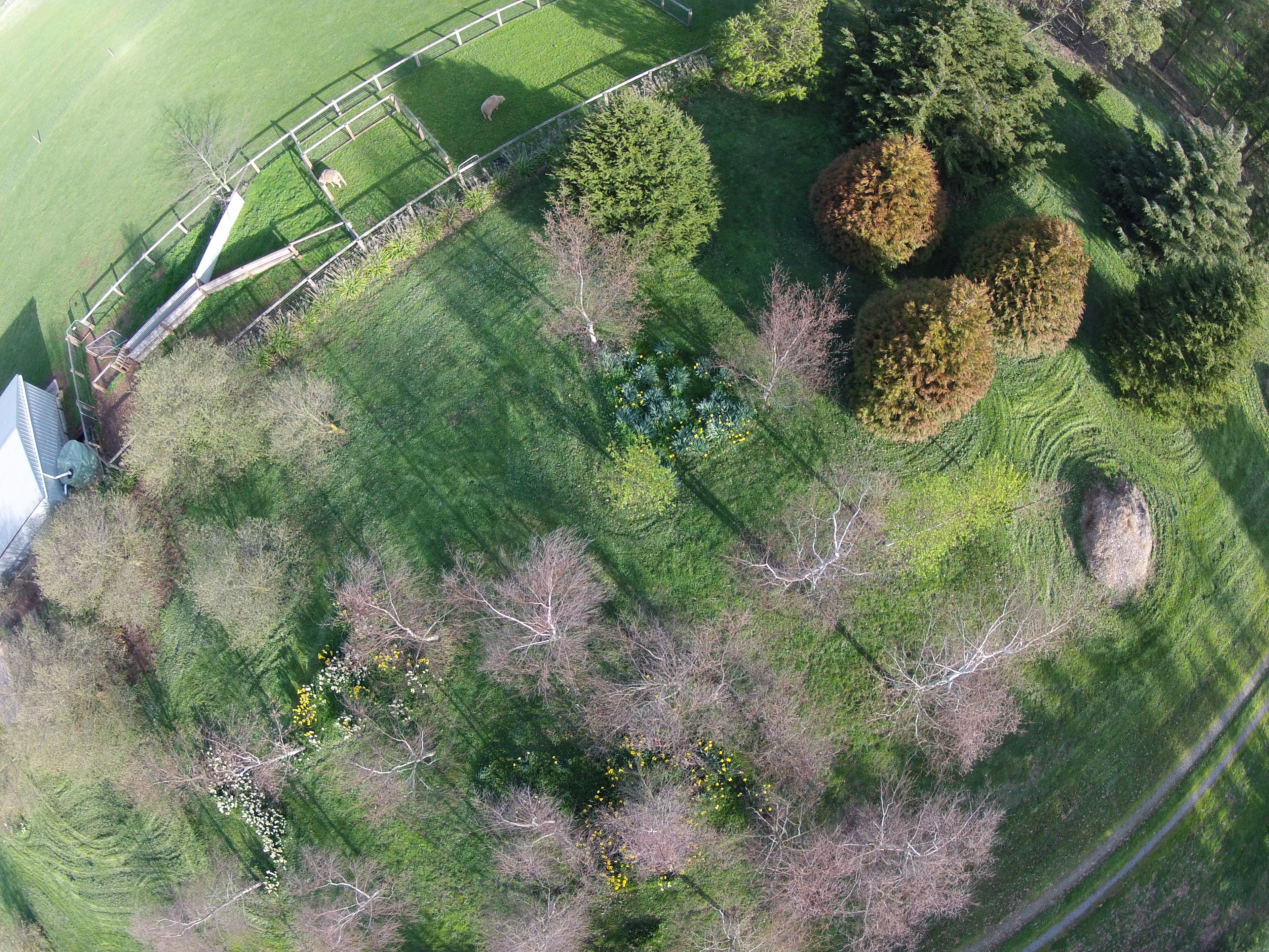 Some interesting shadows looking down on the birch trees at home.
