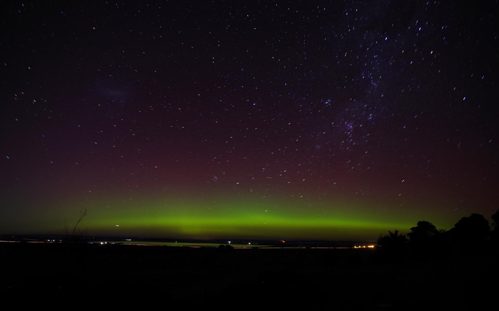 This is a 2 minute exposure at ISO 400 - not too noisy but you can see the movement in the stars. You can also see some 'lumps' in the aurora - these come and go over a matter of minutes. Sometimes it was brighter off to the right, sometimes to the left etc...
