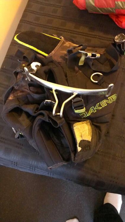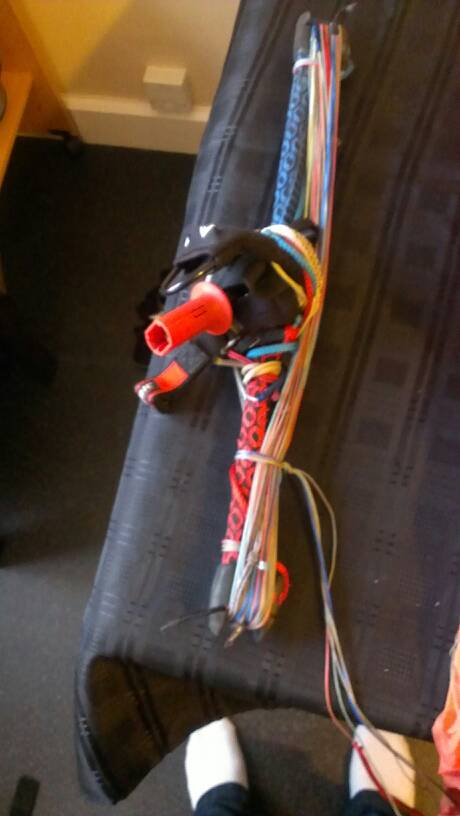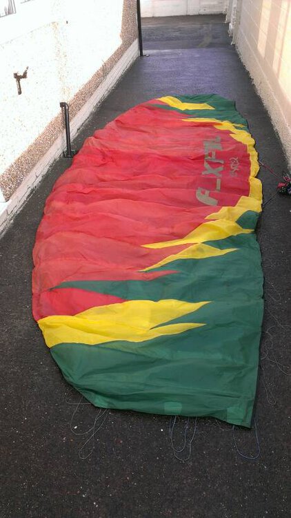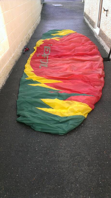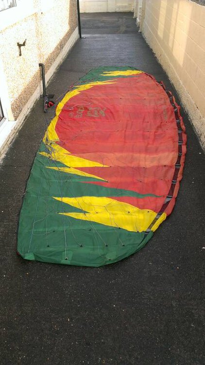 Whilst unpacking realised I parapacked which isn't good for getting it out indoors. I've wrapped the lines on the bar for now but the kite will be packed better for the buyer. Also pictures of the harness I'm willing to throw in free of charge if the buyer wants. This is my only depower so useless for me now.