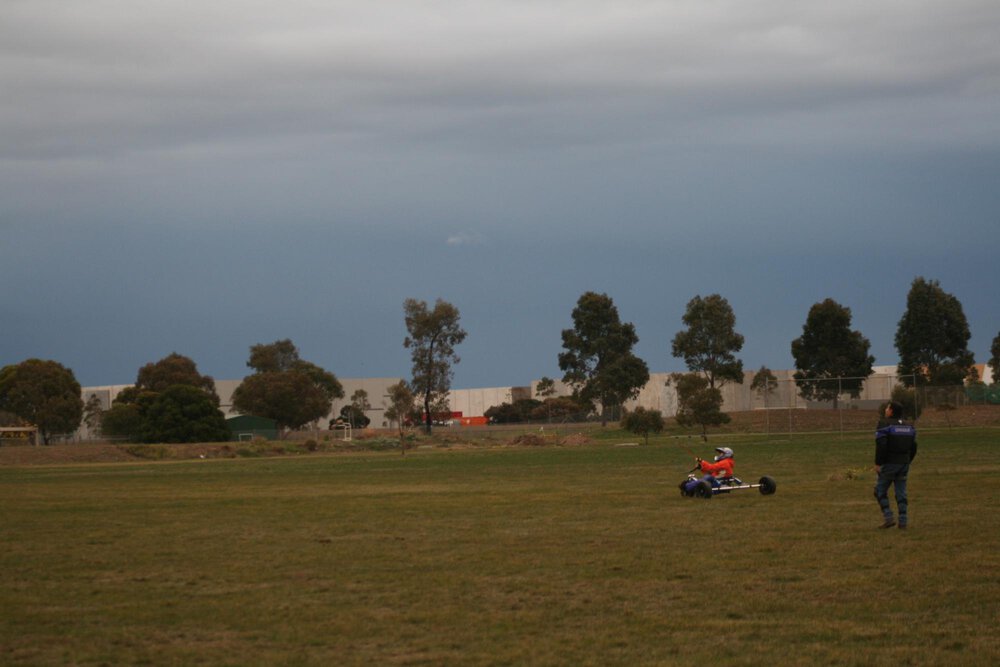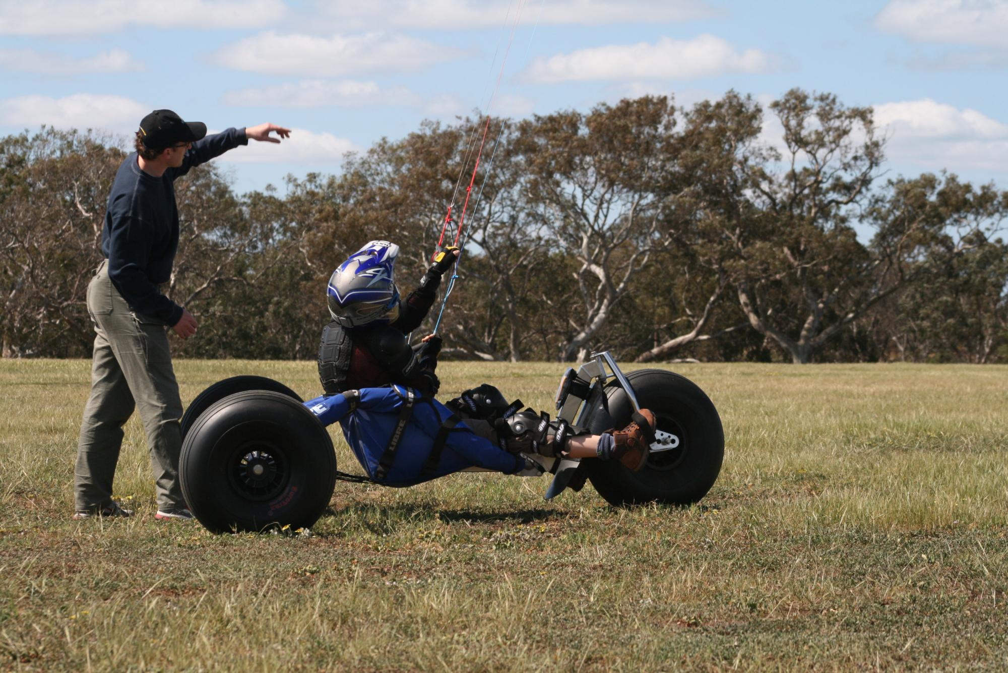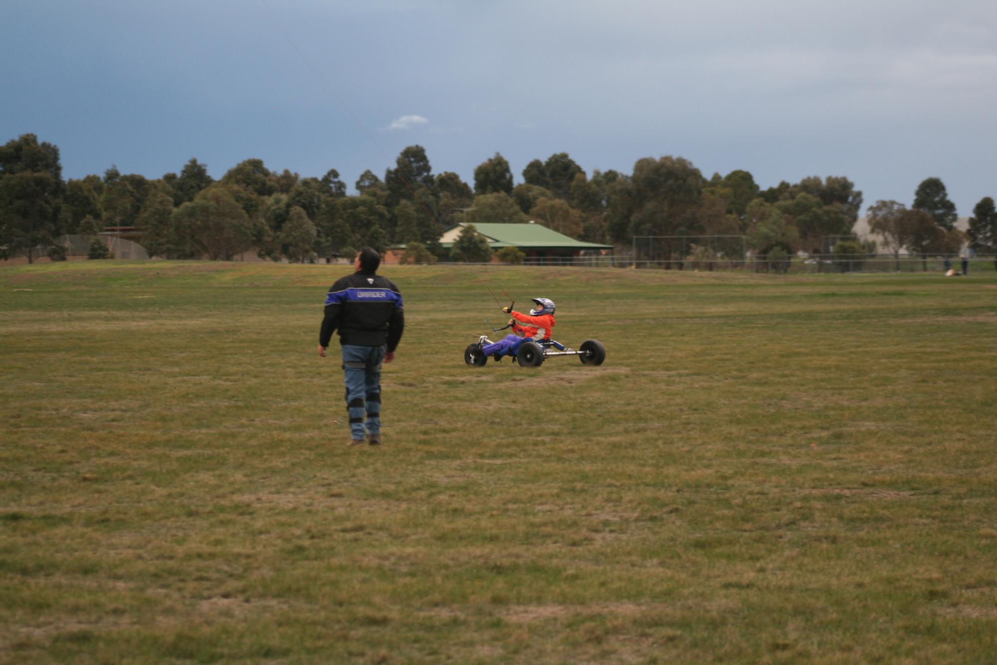 my second go at buggying was great thanks to a very patient instructor called Nigel . I went up and down wind , did some turns , crashed the kite and guess what no bang on the helmet with a voice yelling '' are you stupid ?'' Feels great crusing around in Doms tractor . Looking forward to my next go.:D:D:D:rofl: