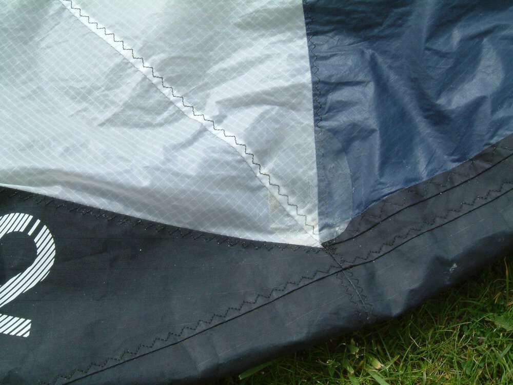Has one small cut (about 2cm) on canopy near leading edge which I did just after getting it new in 2008. Patched with tape and has been fine since (see pics).