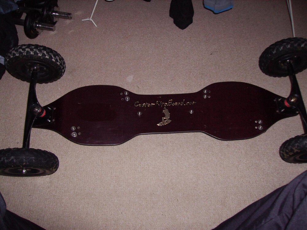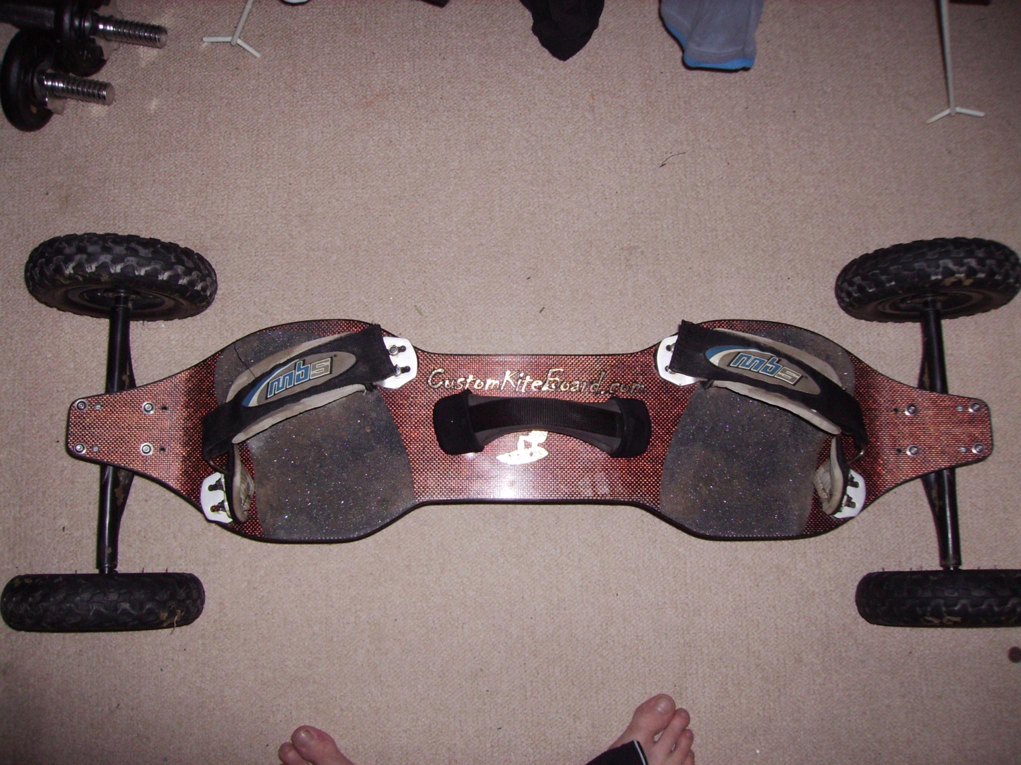 custom kiteboard LB35, mbs pro ti trucks,primo light weight hubs and tyres.mbs f2 bindings and stainless sealed bearings. no damage just a few light marks on the base.