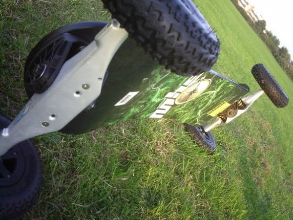 Selling Trampa, Deck with basic stake trucks, Has drilled holes in to for lighter weight, 13ply, a bit of wear in one of the drilled holes. (I'm now keeping this on hold before I get my new deck as I still need to use this)
