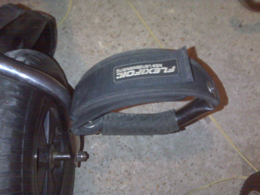 Those Mystic ones above do look really nice. I got given a pair of old Flexi landboard bindings the other week. I started off by bolting them exactly the same way as the Mystic ones in the pics above. But, although I found they kept my feet nice and snug, my feet were at a bit of a funny angle as they were being forced up the angled part of the foot pegs rather than on the flat bit. The donator of the bindings suggested a mod where you get a nut welded to either side of the forks (just above where the footpeg bolt is) into which a bolt can be screwed and used to attach the bindings at the fork end. That way there's more room for your feet on the pegs. I simulated it by using a load of cable ties and it's much nicer, but the cable ties are breaking already so the welded bolts are definitely the way to go.