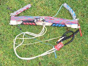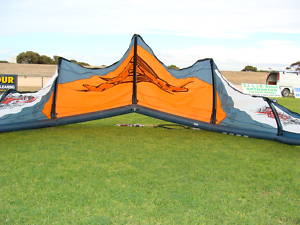 in good condition used for one season,lines in good nick no leaks or rips...one small pinhole has been patched with sail tape just incase about 2cm round..awesome beginner to intermediate kite helped me progress quickly..