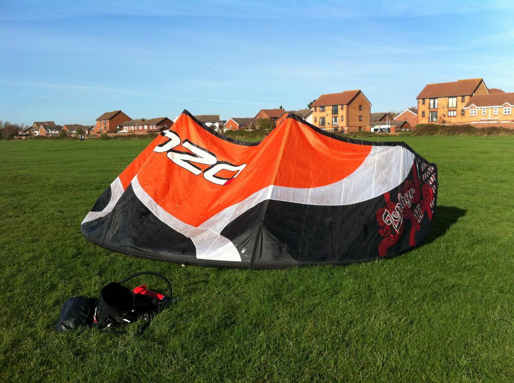 Kite has about 4-5 pin pricks in the main canopy from the last owner but all are patched up and you would hardly notice them (good luck finding them in 17m2 of canopy!)