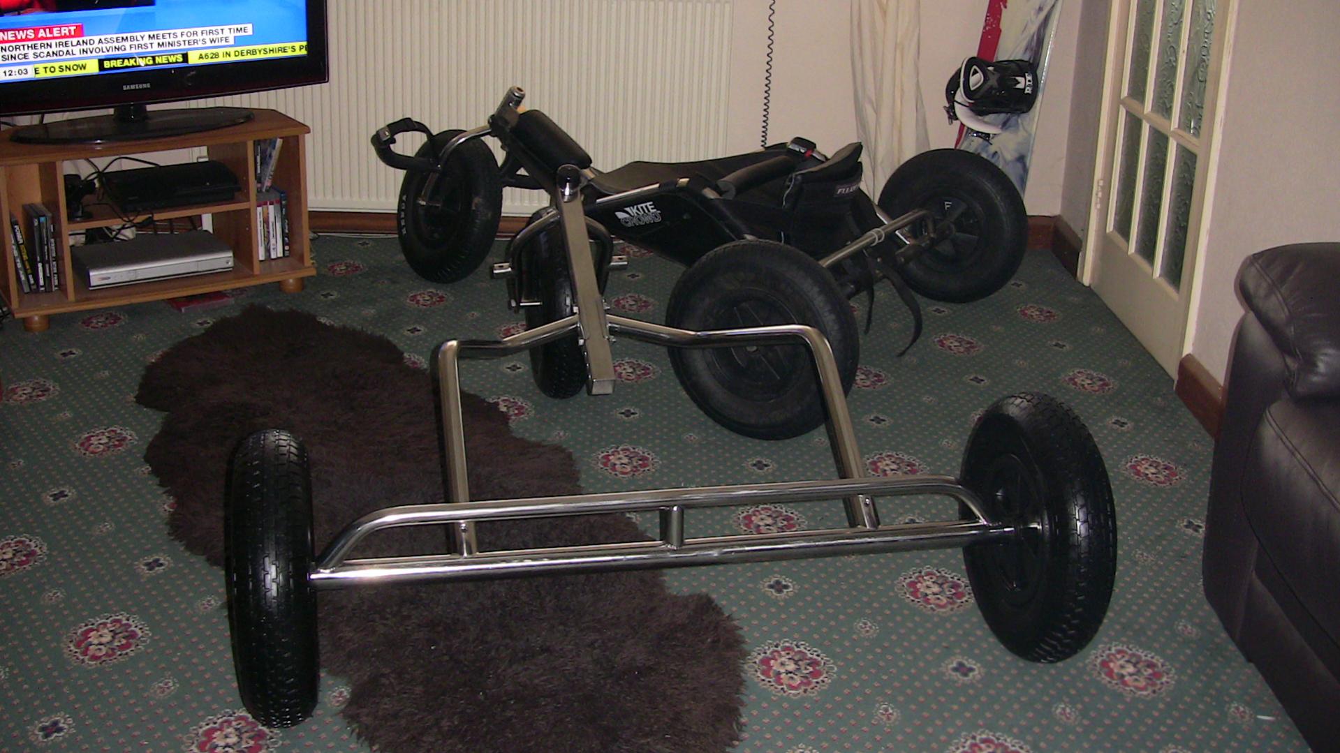 6. Ozone Frenzy 9mtr FYX 2009. excellent condition, brand new lines (old ones got hit by some guy with a model airplane). the kite has never been crashed. the ultimate freestyle de-powerable £350 + p&p Flexifoil SS Buggy. new bearings, downtube strengthened, roller bearing headstock conversion with seals, rear towel rail made and fitted by Popeye the welder at a cost of £100, lapstrap, footstraps, spare wheel, pulling strap, metal seat buckles. full on freesyle buggy. £250. Both kite and buggy can be seen in this video: [video=youtube;XKtq-RkKmA4]