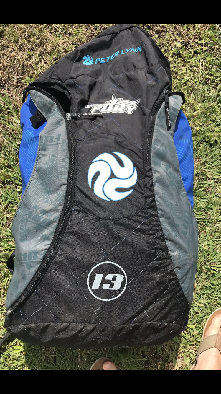 Sold: Peter Lynn fury 13m $75 Fair condition. No known leaks (pumped up today for 30 minutes), one small patch. Kite and bag only.