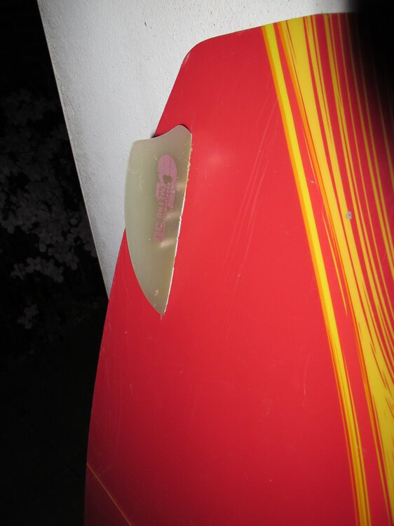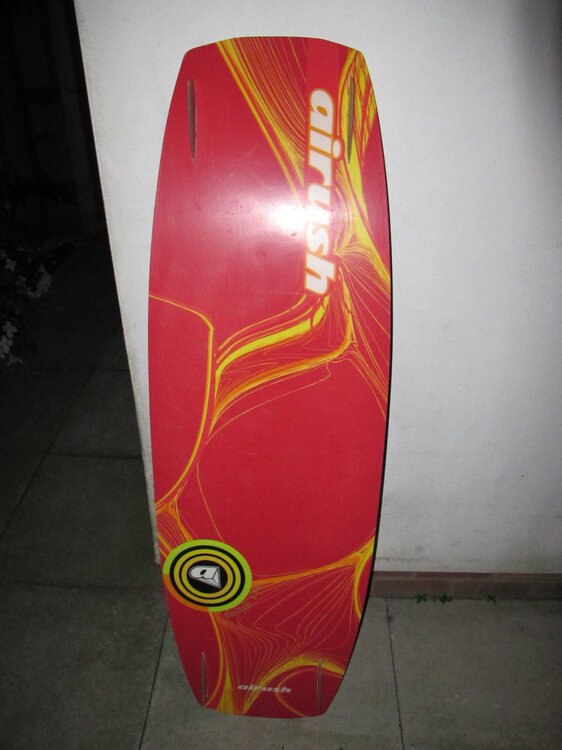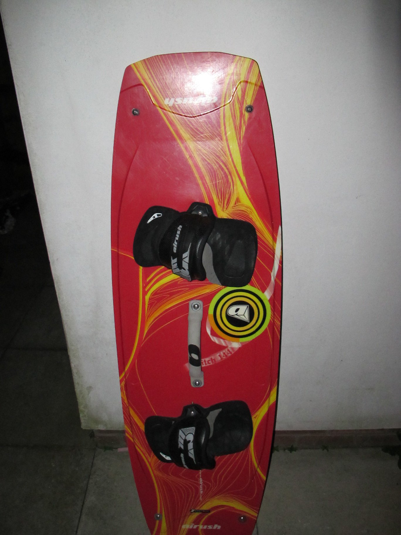 A 143 Airush board with fins and footpads. a few used cosmetic scratches but an excellent board. Not cored so very poppy. footpads in good nick as are the fins. in the dark red scheme with yellow swirls. Comes with cabrinha kite bag. £120