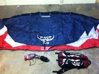 5m Blurr in Hulk, the kite has been well used but flies as it should. It has marks on, the white is discoloured and the bridle lines look more grey than white. Comes ready to fly with Prolink handles, 25m lines and with the original bag