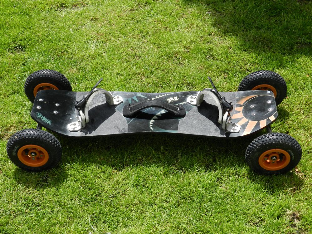 The RKB R2 mountain board has been developed and designed so the rider can easily perform freestyle figures, and also practise powerkiting. The R2 is very light, flexible (to cushion jumps) and easy to ride, and features ratchet bindings and stainless steel parts. The R2 is the most versatile board of the RKB range