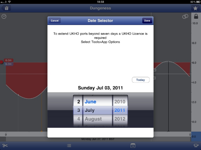Tide Planning Application for Iphone/Ipad/Ipod - £2.99 / Free version with limited functionality Good Bits: Handy sliders allow you to set the tide height for your favorite beach and see exactly when you can board or buggy.Extended tidal information for France. Bad Bits: Most information available for free elsewhere, just not as convenient.You might have to purchase additional licenses to see UK extended tide times. I bought this app when planning a buggying trip to France, as I was unable to find tide times for France for dates more than a few days ahead. In the UK, you can easily find all this info for free although not all in one convenient place. Windguru will give you the times for a month or so in advance (in local time as opposed to GMT), but only shows the graph for the current day or so. The BBC weather site will let you see any date with the graph, but the times are in GMT which must be translated to local time in different ways at different times of the year. That’s too hard for my little brain. Even though it cost a few quid, this app does everything better than all the free stuff, and has some handy tools that make it really easy to tell when a beach is usable for buggying or boarding. You can specify in the options whether you would like the time listed in GMT or matching you device’s time settings. First, you look at a Google-like map to pick the tide station closest to your beach. There was a wide selection for England and France as you can see from this screenshot. Each of those little white dots can be picked and saved as a favorite. The next step is to pick a date, as the screenshot shows. You might also notice that the app seems to be asking for more money to enable looking at tides more than a week away. I’m not sure what’s up with that, I’ve already paid for it. That limitation doesn’t exist for France, you can look up any date. Then you get your tide chart, as shown below. You can see the tides for the whole day as well as sunrise and sunset. There is also a bar you can drag, that I have put at 6 meters representing the level that the beach is exposed at Greatstone. The red bits are the times that the tide is below the bar and the beach is exposed, but not necessarily dry. The little sailboat icon can be dragged along the sine wave and shows you the exact time. In the above picture, I’ve put it exactly where the water reaches 6 meters, so I can see that it will happen at 11:35. That should mean that I can buggy until 11:35, probably a little less as the water will come up fast! You can also see a textual view like this: I did notice the application is missing coefficients, which would be nice to have for Les Hemmes. Author : Jim O’Hara