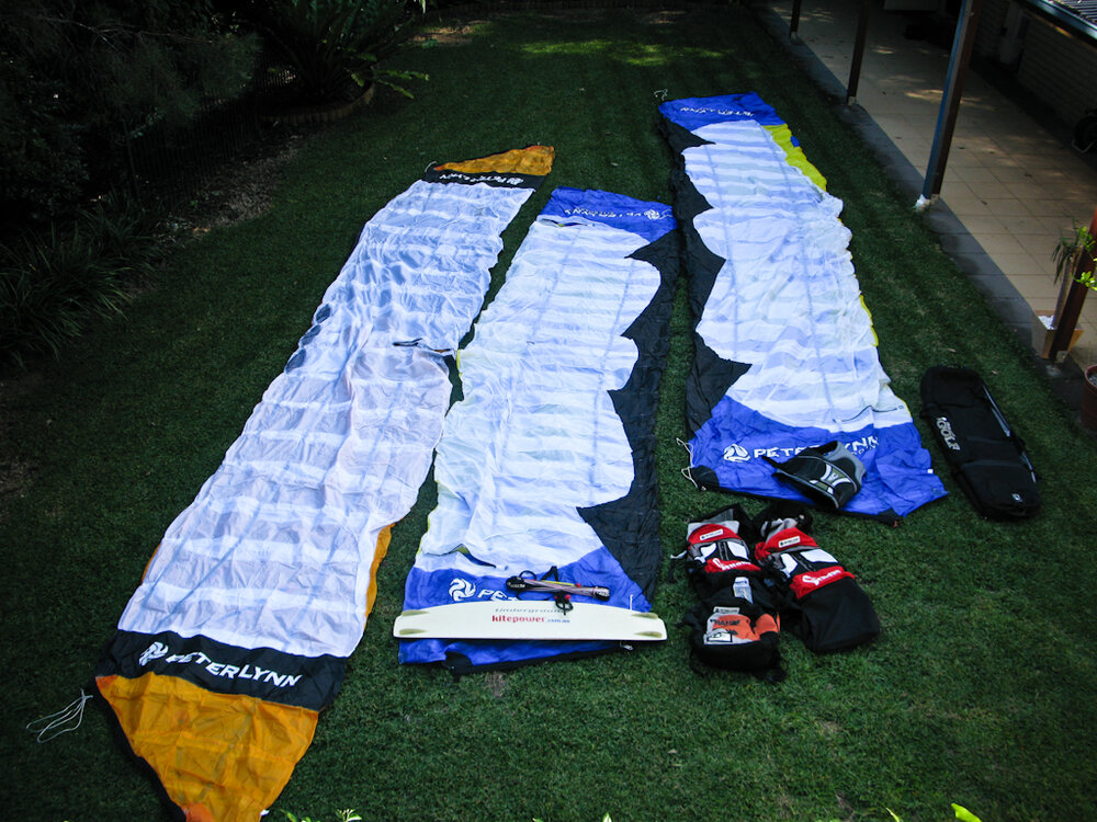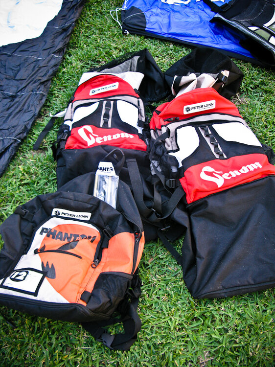 Room for my 2 Vemons, 142tt and harness, impact vest, helmet etc. I wouldn't use the external bar section on the flight legs but it is good when comming off the beach as it has a mesh section to let it dry out.