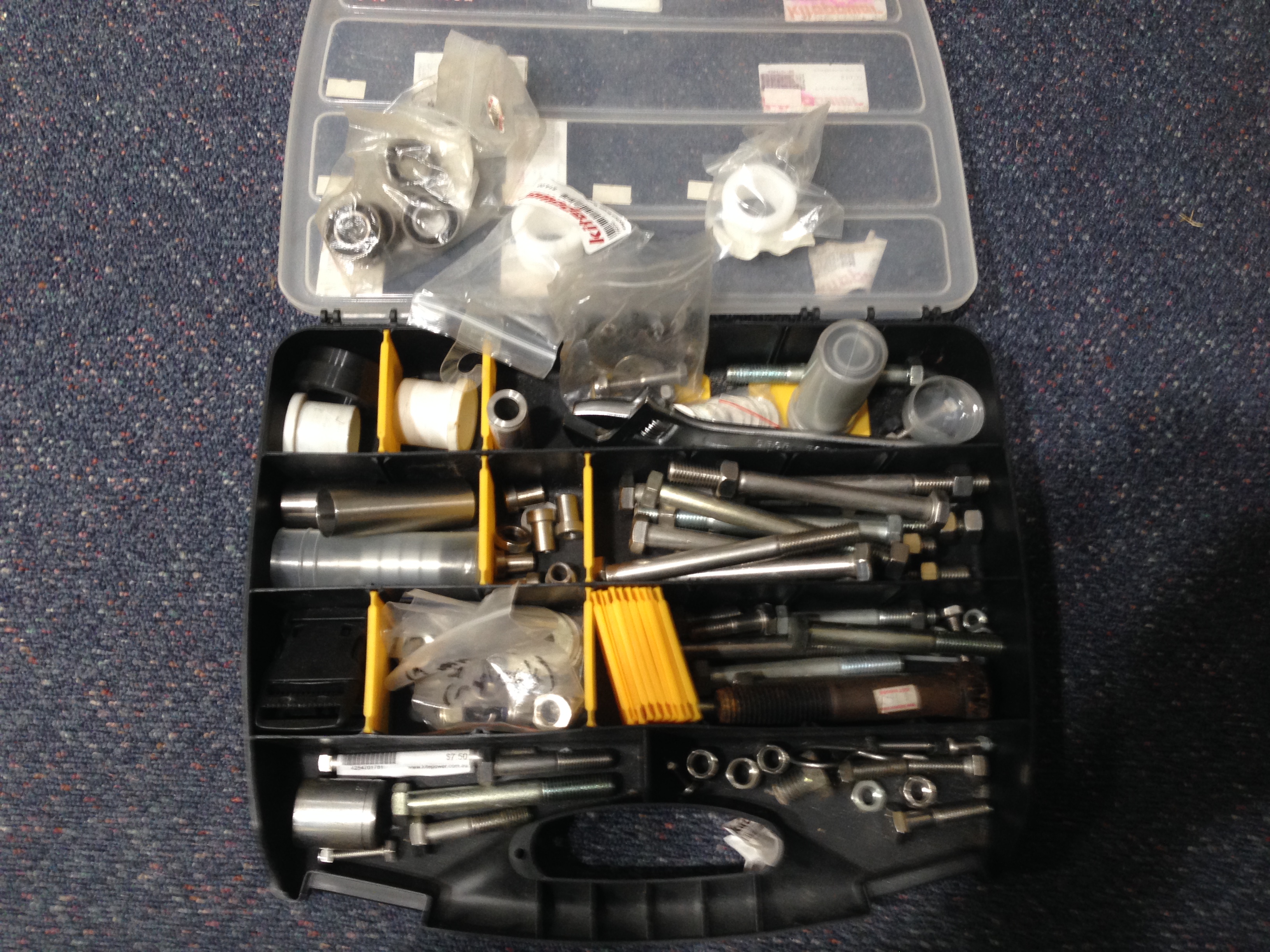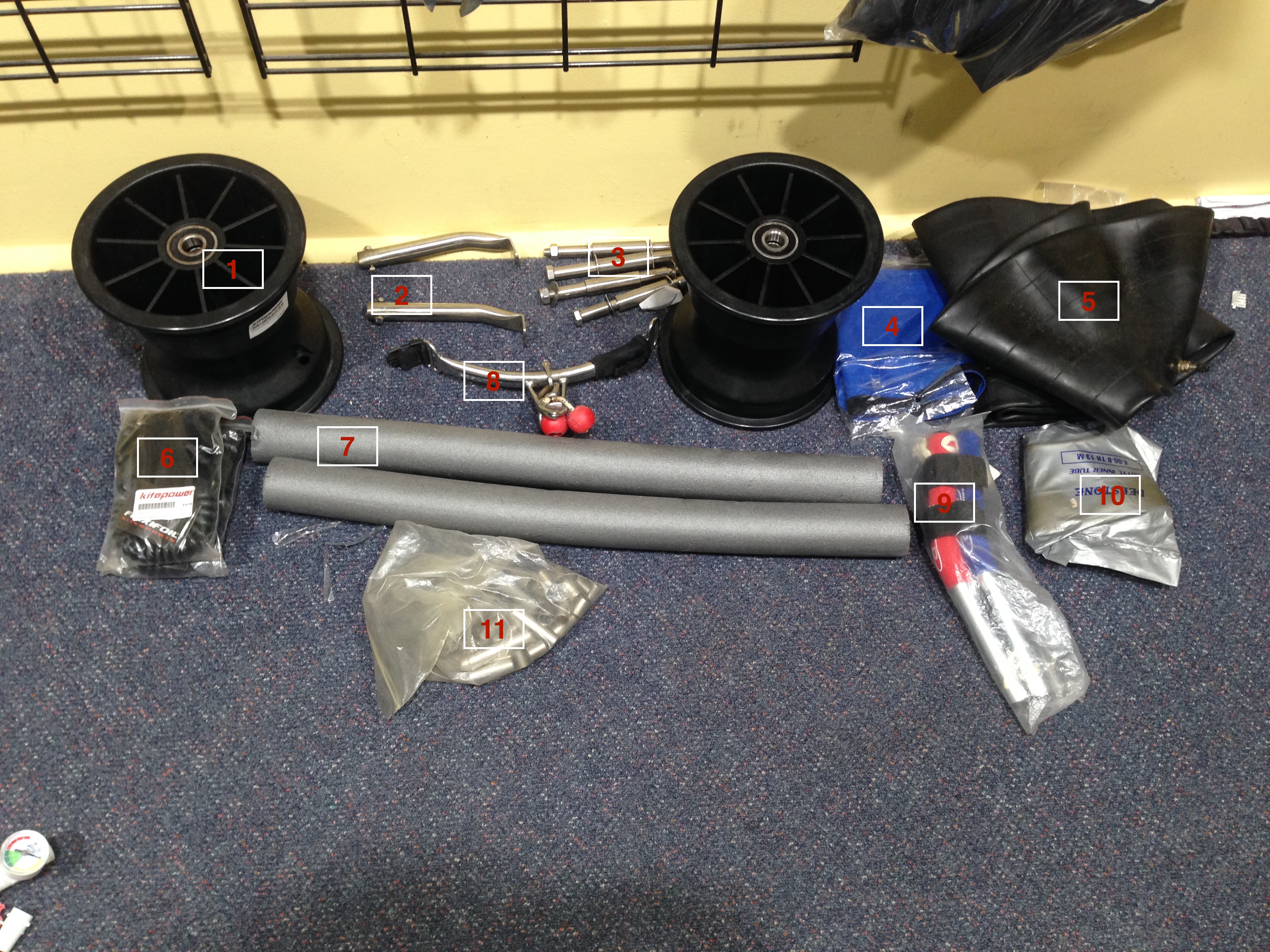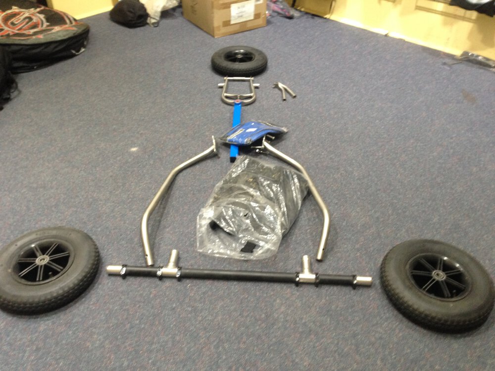 After doing a very thorough stocktake, found a lot of bits and bobs that are getting old or just not wanted any more (or have too many) See pics a descriptions below. Shipping not included in prices. WALL PHOTO 1. Peter Lynn Gigastrong axle - $125 - SOLD 2. Quad wheel buggy adapters - $100 (for both) 3. Libre Fork bigfoot light type II 12mm axle, stainless - $100 (ordered incorrect fork for customer) 4. Peter Lynn swivelling spreader bar - $20 5. Ozone helmet bag - $15 - SOLD 6. Peter Lynn foot pegs - $30 per pair (no idea why we have so many) 7. Libre arminator spreader bar, last one - $80 - http://www.kitepower.com.au/libre-arminator.html 8. Peter Lynn walk of shame strap - $10 - SOLD 9. Peter lynn axle pouch - $5 each - SOLD (both) 10. Climax 350/350dan x 20m quad lineset (overkill for landkiting...) 11. Libre deluxe harness XL - $70 each Random shifters - ??? FLOOR PHOTO 1. Peter Lynn Rim Assymetric 8 x 7 Off Set inc 20mm bearings - $100 each 2. Used PLynn footpegs - $15 - SOLD 3. Font axles with spacers - $30?? 4. see #7 5. Big foot inner tube - $30ea 6. Random flexifoil ankle leash from mountainboard - $5ea 7. Sideframe padding pair, plus one cover (#4) not sure where the other cover is $25 8. used Pro Limit spreader with wichard 90mm snap shackle - $60 (shackle is worth $119 new) 9. DP alloy quad handles - $15 10. Standard buggy inner tube - $15ea 11. Mystery bag of stainless spacers collected over the past 15years or so from different fork and wheel combos - $1 per spacer? i don't know. BITS BOX - not going to list what is in here but if you think there is anything you might need, give us a buzz and I'll run upstairs with the callipers and give you measurements. Finally - I had enough parts to make a frankencompmkII buggy - $800 - happy to put the giggastrong with it for an extra $50 too. - SOLD Oh and i almost forgot about this guy! Will only fit the super old smaller PLynn axles that everyone used to bend It's a tandem buggy coupler - $15 Reply to thread of give the shop a call 02 95296894 and ask for Peace, the other guys here will give you lots of umms and ahhs if you ask too many questions about some of these relics Also happy to hear offers if you think my pricing is off. I will update this thread when products are sold. Cheers.