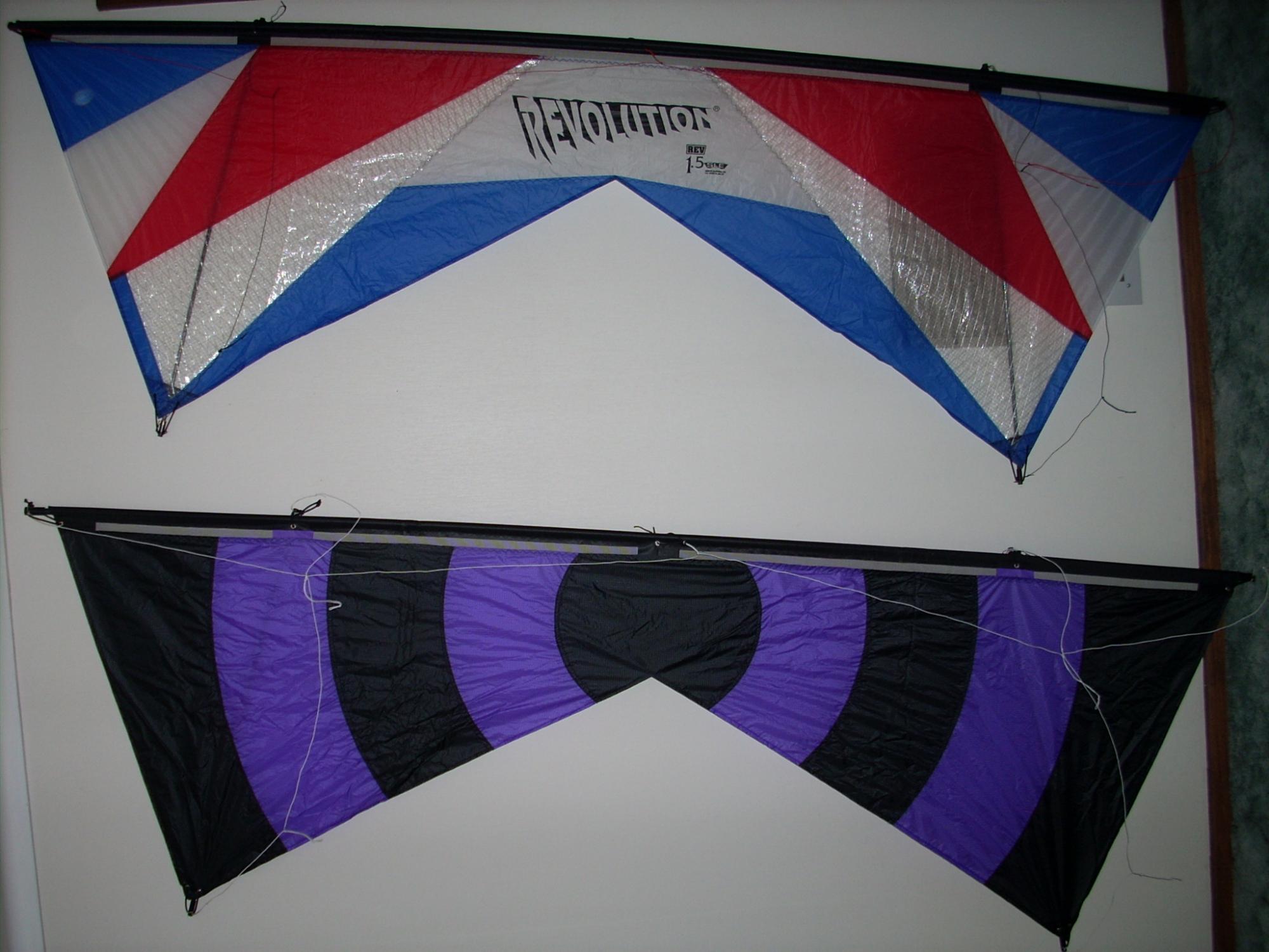 1. Original Rev 1.5 SLE, wrapped carbon fibre frame and fittings Sail made 3/4 oz top quality sail cloth colours Black and Purple Sail and bridle are made by experienced kite flyer / constructor and made to same dimensions as original Rev 1.5 SLE (original Rev 1.5 SLE shown for comparison) Kite in new condition, comes with new line set and kite bag