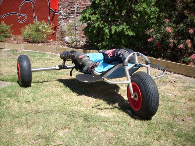 12. fitted with splashguard and nylon bum protector 1400 wide with 20 mm stud rear axle spare downtube and front fork ready to race, priced to go $280 Craig 0407 343 015