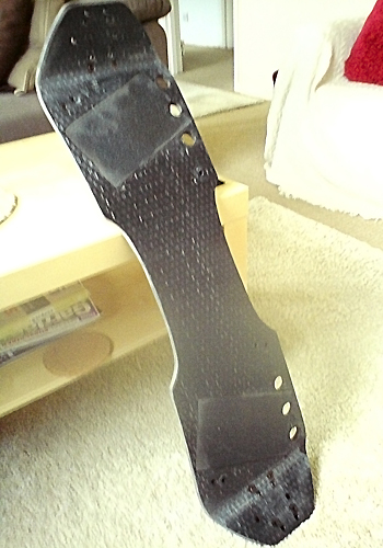 35 degree, 14ply, short. Drilled for MBS Matrix trucks (recommended) & also revo/skate. Waisted in the middle an inch each side as it was a bit too stiff for me to start with. Three holes drilled along the toe edge to lighten it up. Would suit 70-85kg rider. £50 delivered by courier. PM if you're interested.