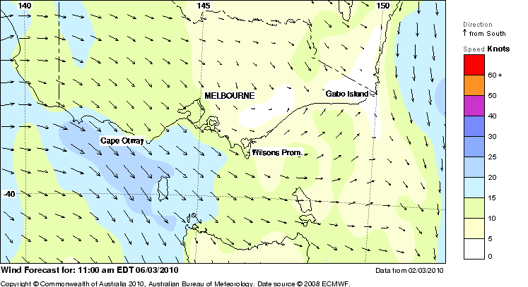 nigel Posted March 3, 2010 Report Posted March 3, 2010 Saturday's wind forecast at 11am. Joel's pirate off-shore forecast says 8 knots WSW at 11am. Quote