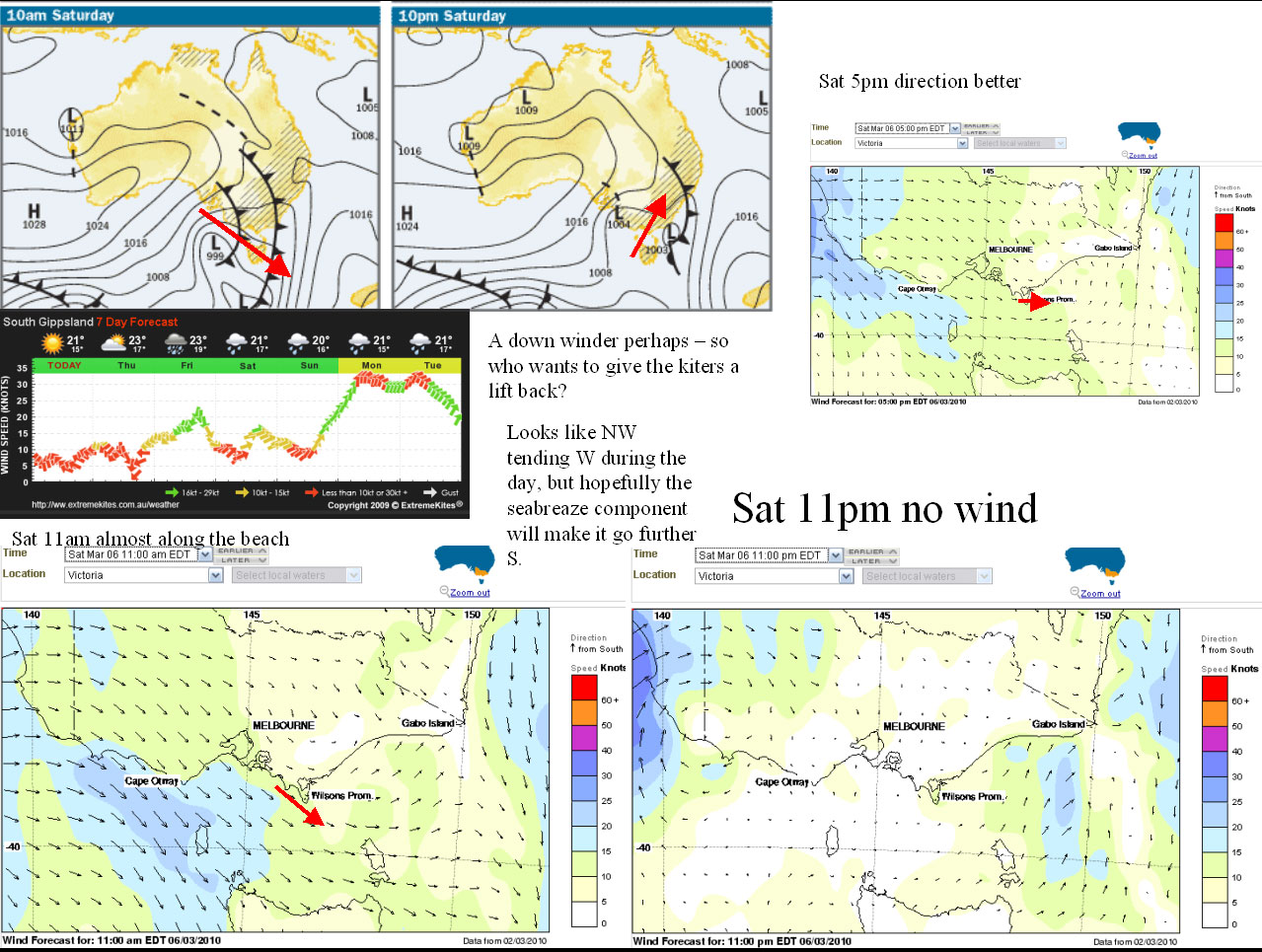 SoutherlyBuster Posted March 3, 2010 Report Posted March 3, 2010 Well here is my summary of the wind for Saturday, EK Joel Versus Nigel: Norman. PS. Thanks Joel for the location map, I still like yours better, but the synoptic charts are matching up with the wind vector plots, but the big question is how well the sea breeze effect is taken into account, and the bigger doubt with the wind vector plot is that it is a three day forecast with a low time resolution. I like Joel's better ... Quote