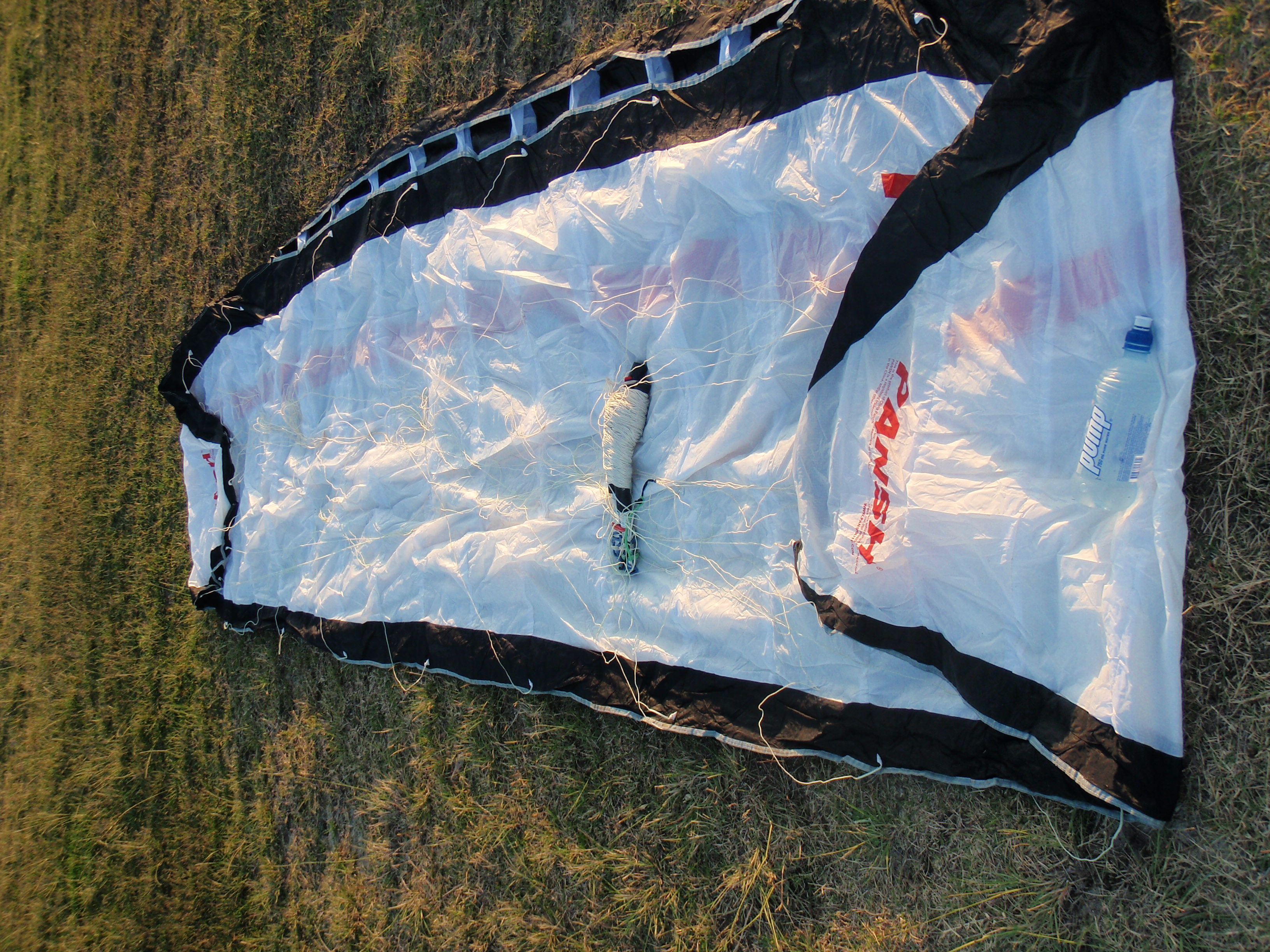 Both are clean with no rips, tears or grime (the 6m may have the tiniest of dirt marks but only maybe as I can't remember!), I always stretch my lines out before use so these won't be stretching anymore and are ready to fly out of the bag, the 2.5m has a red trim and the 6m black trim on a white kite