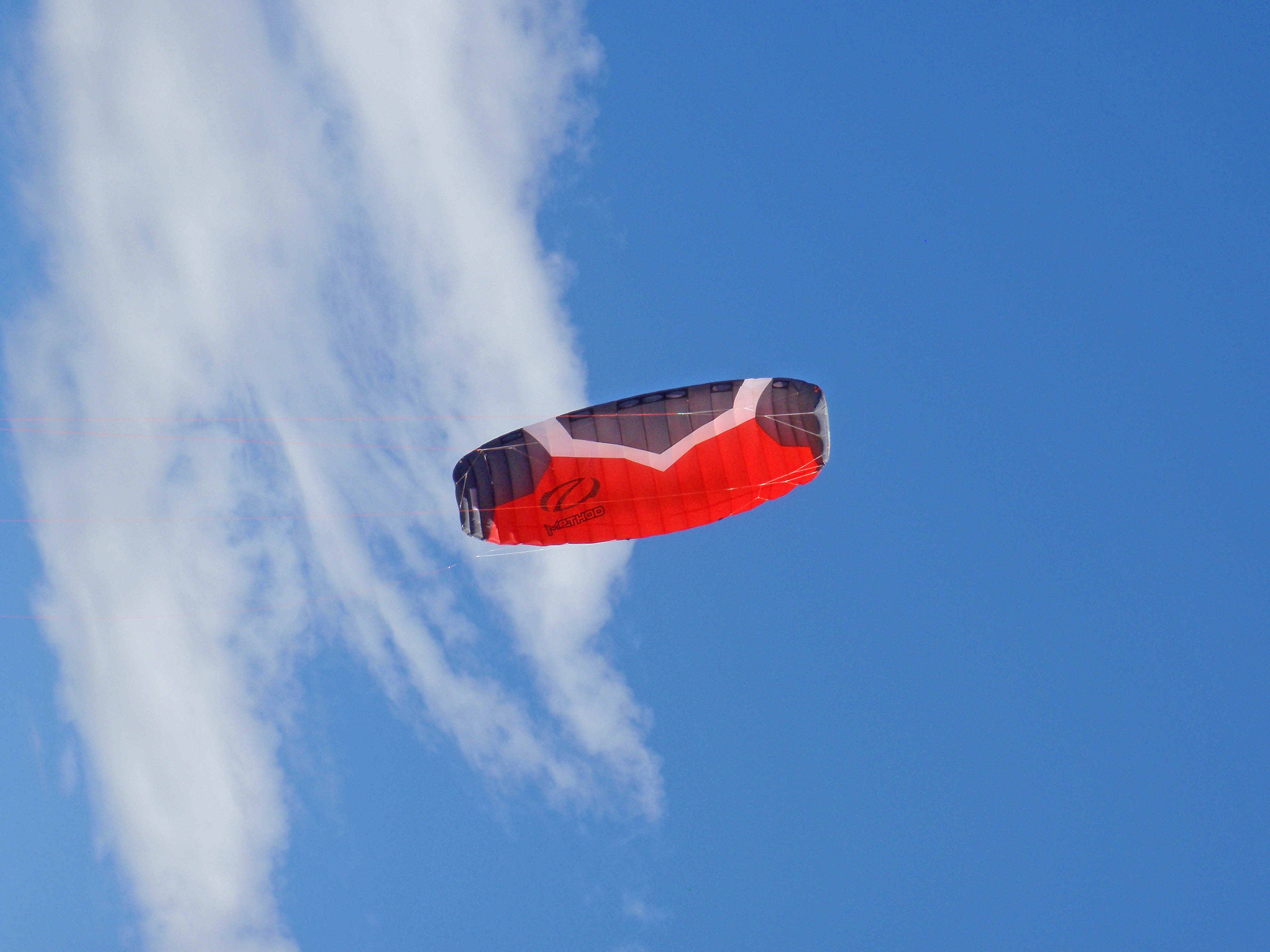As mentioned above I have my hands on the 5m Method. The kite I have had never been flown and was new in the bag. Looking at the kite I notice typical Ozone quality. Material, stitching and components are of a high standard and with the brief look I took over the kite I couldn't fault it. Bag is GREAT!! Not too big, quality zip and looks strurdy. Setup was as easy as connecting the labeled, colour coded lines to both ends. OK enough of the boring stuff..