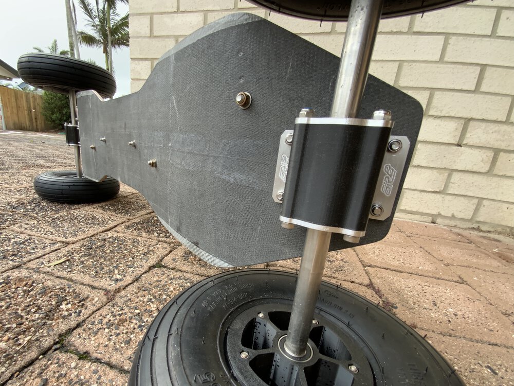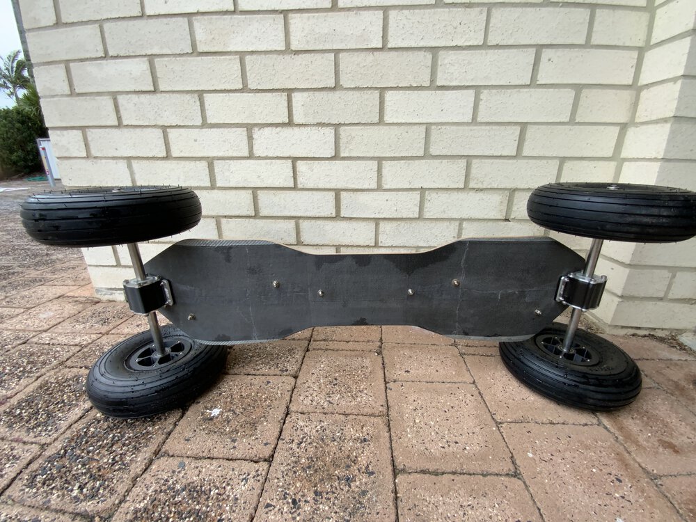 captain caveman Posted August 11, 2009 Report Share Posted August 11, 2009 i started off with an old trampa eathrboard ........ chucked a few quid and some jigsaw blades at it and came up with this ..... sold it and moved onto a pro90 but found it too stiff ...... so just recently aquired this from Psycho2..... kevlar and glass fibre nsx kitedeck , titanium revos ..... ive added the mbs bits myself ..... the t3's and new f2's are weighing it down a bit but its at a very respectable 5.5kg Quote Link to comment Share on other sites More sharing options...